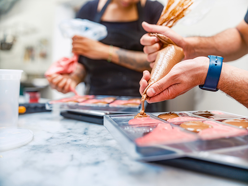Que ce soit pour un enterrement de vie de jeune fille, un atelier d’équipe entre collègues ou un moment complice entre amis, Muriel vous accueille dans son laboratoire ou se déplace à domicile, pour vous offrir un instant unique où vous pourrez découvrir les techniques de la pâtisserie et créer vos propres douceurs.